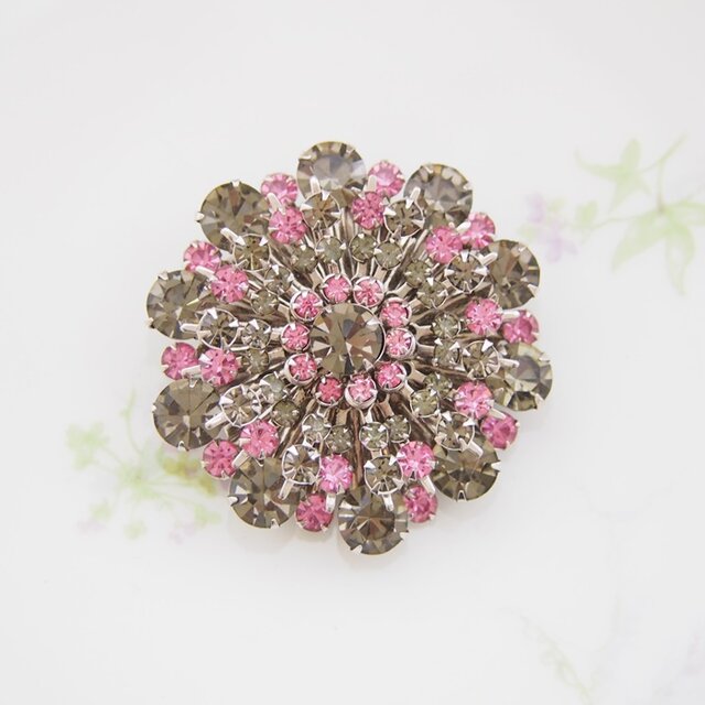 ピンク&グレーラインストーンのお花のようなブローチです。