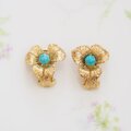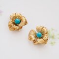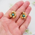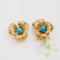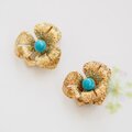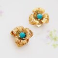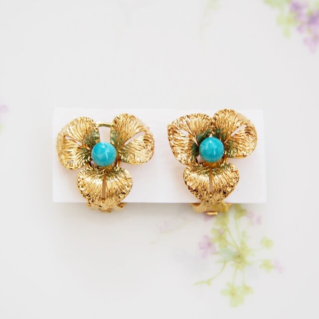 GERMANY ドイツ ゴールドトーン ブルービーズ フラワー イヤリング / CJ5189