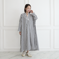 コットン ストライプ シャツワンピース 前開きボリュームシャツワンピ