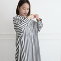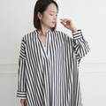 シャツワンピース コットン ブラック×ホワイトストライプ 0180BK/WH