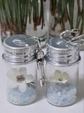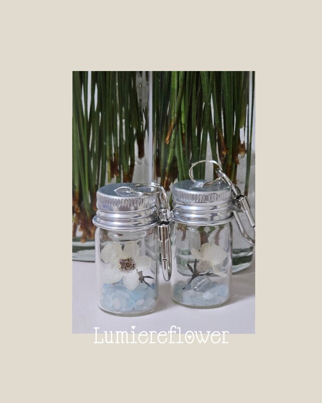 白コドナンテとアクアストーン、水晶の小瓶チャーム 水のきらめきに浮かぶ、一輪の花と一雫