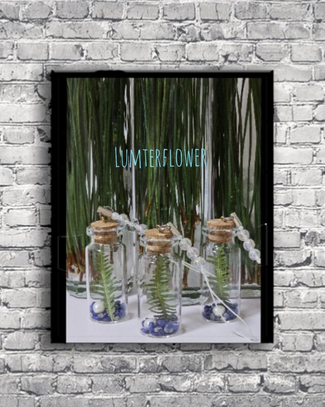 シダ植物、淡水パール、ラピスラズリを閉じ込めた小さなボトルチャーム。