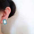 bluegreen moon glow glass square ヴィンテージピアス