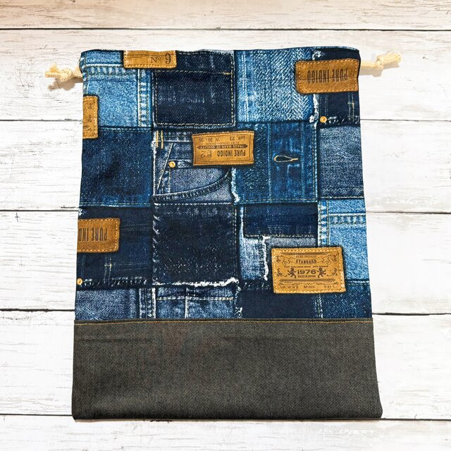 巾着袋 大 【デニム柄】