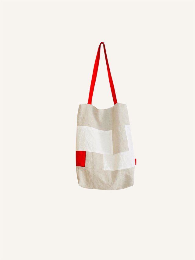 天日干しリネンや麻の布でパッチワークした肩掛けbagです。