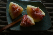 お菓子、果物、おつまみ、料理の盛り付けにも。いずれかの縁は立ち上がりがあるので、この高さを活かしてカトラリーレストとして使ってくださっている飲食店さんも。