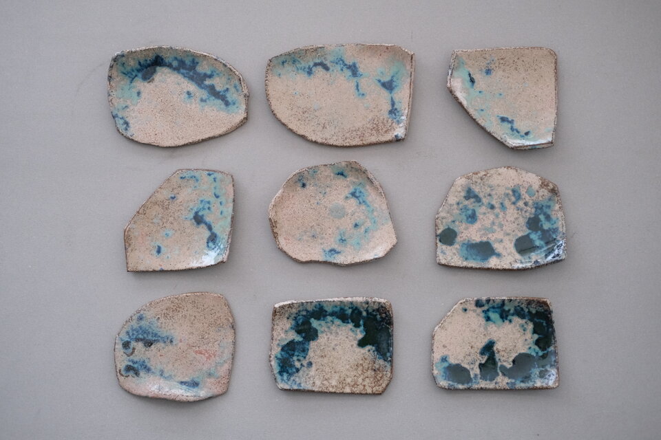 豆豆皿の製作をお願いしている、いざきあつしさんのかけら皿。