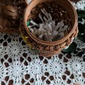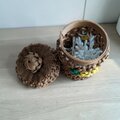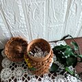 花結び編みを施したクラフトバンド製の綿棒ケースです。