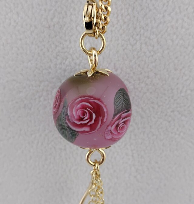 ピンク系の地玉にピンクのバラをいれました。4種類の房がポイントです。