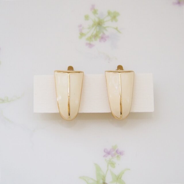 ゴールドメタルとアイボリーのエナメルのイヤリングです。