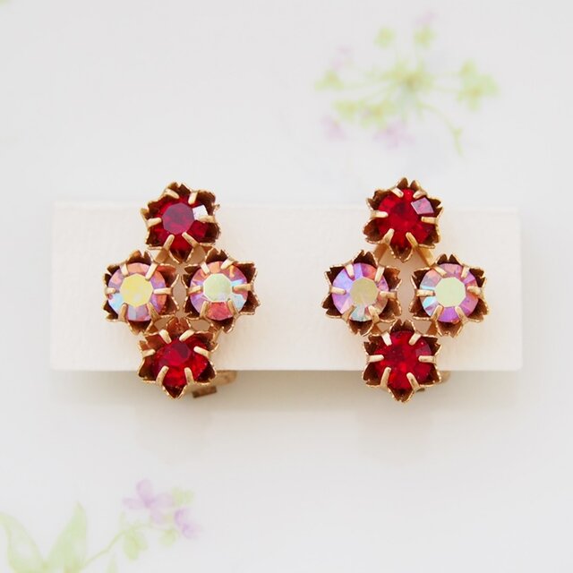 Unsigned Beauty ゴールドトーン レッド&オーロララインストーン イヤリング / CJ7044E