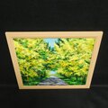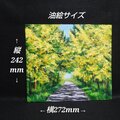 「ホルベイン」の高級油絵の具を使用し、幾重にも色を重ねることで、まるで光が画面の奥からこぼれ出るような感覚を実現しました。木漏れ日が降り注ぐ道と続く光のトンネルは、油彩特有の厚みのある筆致(インパスト)で表現され、風景に深みと躍動感を与えています。横272mm、縦242mmという飾りやすいサイズ感は、玄関やリビングに最適で、見る人に明るいエネルギーを届けます。