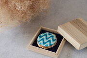 国産絹糸の絽ざしコンパクトミラー 波模様 手刺繍 和柄 桐箱入り ギフト