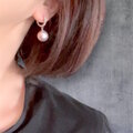 パールの色味に合わせて、シルバーカラーのフープピアスにセット。
