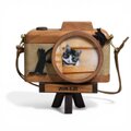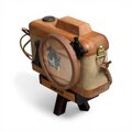 本格的なカメラのフォルムを天然木で再現し、そこに黒猫がひょっこりと現れて遊び回っているような、ストーリー性を感じるフォトフレームです。