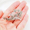 Unsigned Beauty シルバートーン マーカサイトラインストーン フラワー ブローチ / CJ7184