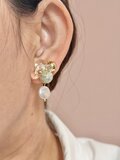 若葉雫|グリーンアクセサリー/パールピアス,/レジンピアス/大人可愛い/上品アクセサリー/揺れる/花モチーフ/ナチュラル/透明感