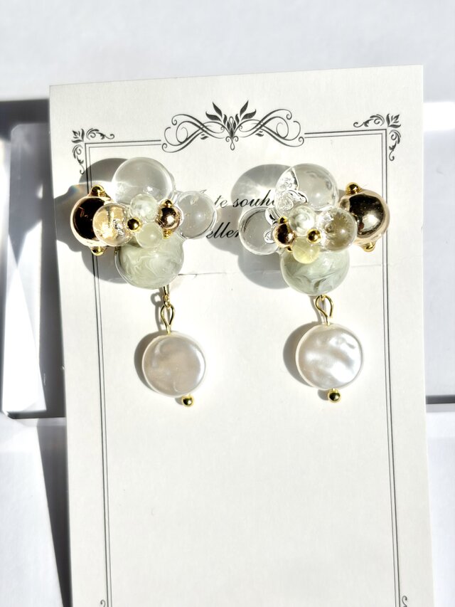 淡いグリーンと透明感のあるパーツを重ね、