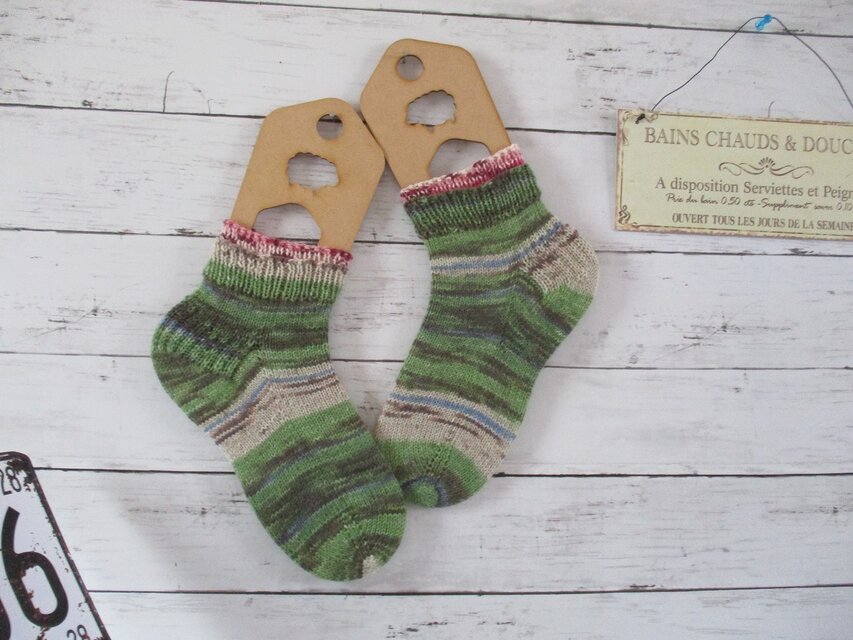 ドイツのブランド Opal KFS 256 カメ & KFS 228 フラミンゴで編んだ靴下履き口二重ゴム編みです。