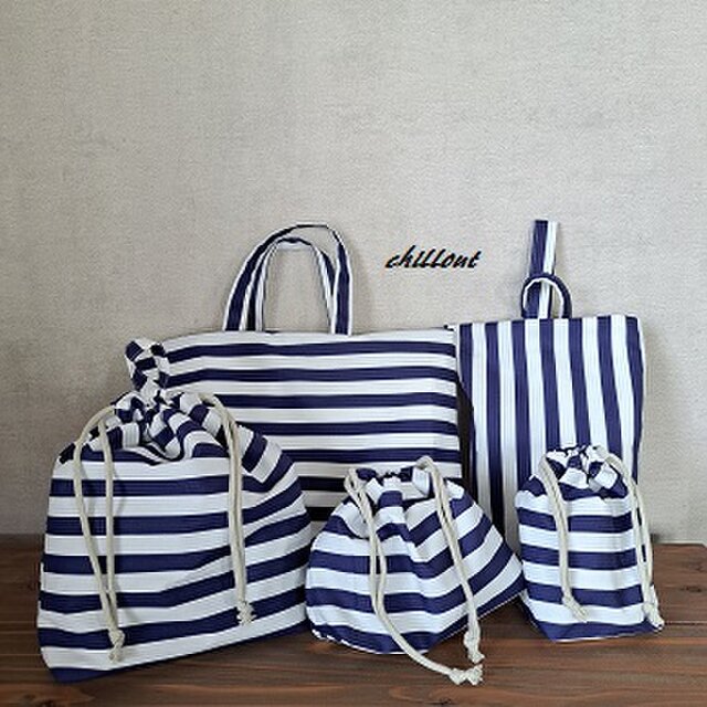 ネイビーストライプの入園バッグ5点セットが出来上がりました!