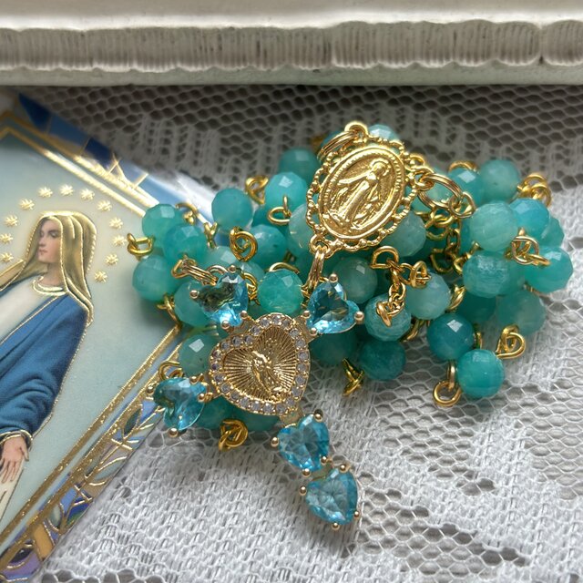 ※59個の玉を使用し、並び方も本格的なロザリオを同様に作っておりますが、こちらではアクセサリーとして販売しています。