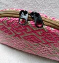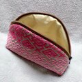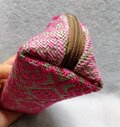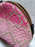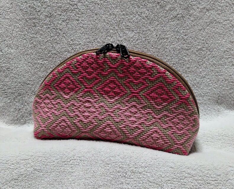 津軽こぎんで半月型のファスナーポーチを仕立てました。