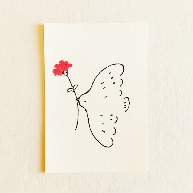 イラストレーター イラスト 絵葉書 ポストカード メッセージカード 紙物 紙雑貨 インテリア インテリアアート ドローイング 水彩 ペン画 春 鳥 カーネーション