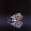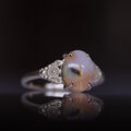 岩石の中にオパールが入りこんだものをボルダーオパールと呼びますが、こちらはオパールの中に岩石も見られる・・・?というような、岩石を奥ゆかしい模様として楽しめるピース。オパール質の部分もオレンジカラーが印象的でとても個性があり独特の魅力を放つひとつぶです。