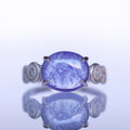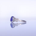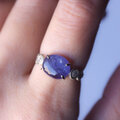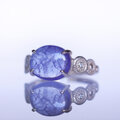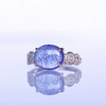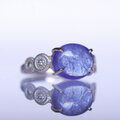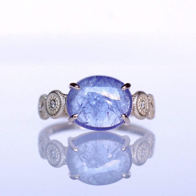 ブルーバイオレットカラーが綺麗なタンザナイト。カボションカットのサイドがちょっと立ち上がっている事ですっきりとカッコイイ印象です。