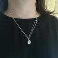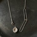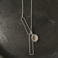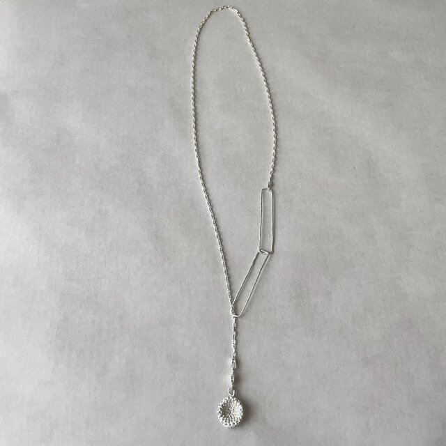 鎚目のスクエアパーツとニット編みのラウンドパーツの組み合わせで色々なアレンジをお楽しみ頂けるシルバーネックレスです。