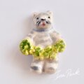 エリック・エ・ジル2025 四葉のクローバーを持った猫のフェーヴ 縞ネコ フランス製 陶器