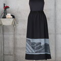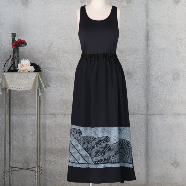 兵児帯のフレアロングスカート 墨黒 フリーサイズ 着物リメイク