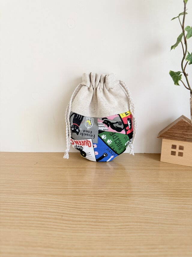 ラウンド型のミニ巾着(カラフル猫ちゃん)