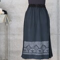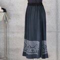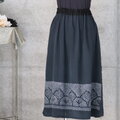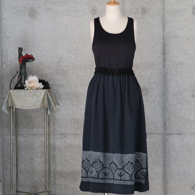 兵児帯のフレアロングスカート ネイビー系 フリーサイズ 着物リメイク
