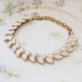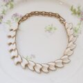白い花びらのようなパーツが並ぶネックレスです。