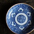 色温度高めの呉須の青で印判手特有の絵のズレや色の飛びムラ具合が