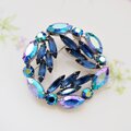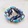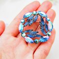 WEISS ワイス シルバートーン ブルー&オーロララインストーン リース ブローチ / CJ7306B