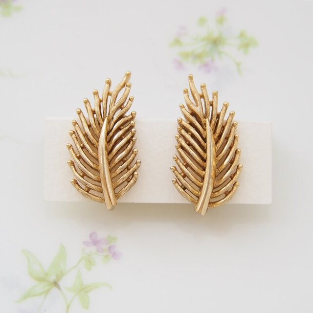 ゴールドトーンの葉っぱがモチーフのイヤリングです。