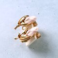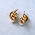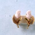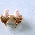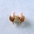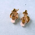 1886年アメリカのニューヨークにて小さな香水会社を創業、1971年に本格的にコスチュームジュエリーの製作を開始したAvon(エイボン)の1994年に販売された“Genuine Porcelain Rose”のゴールドメタルのリーフに薔薇の蕾がデザインされたピンクのポーセリンがあしらわれたヴィンテージイヤリングです。