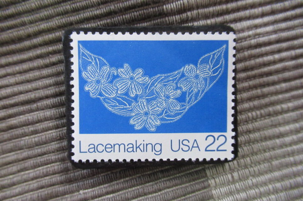 アメリカ1987年 レース編み切手ブローチ 10883