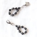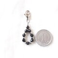 カットがキラリと輝く、漆黒のブラックスピネルとシルバー色のヘマタイトをサージカルステンレスワイヤーで繋いだシックな雰囲気のファスナーチャームです。
