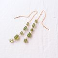 モダンなキューブカットのグリーントルマリンを使用した、軽やかな着け心地のロングピアス。