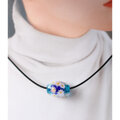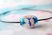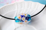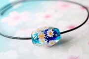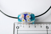 マーガレットのとんぼ玉革紐チョーカー(ガラス玉)泡入り/青×水色