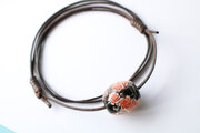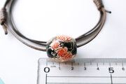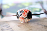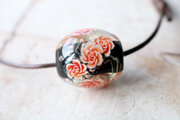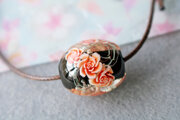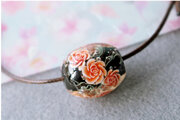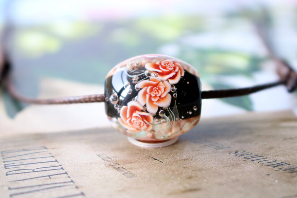 泡を入れた黒の地に薔薇を咲かせたとんぼ玉です。