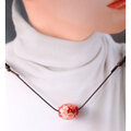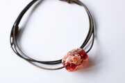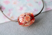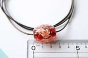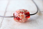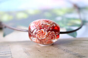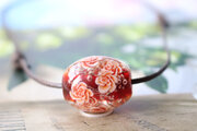 泡を入れた赤色の地に薔薇を咲かせたとんぼ玉です。