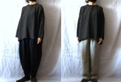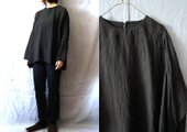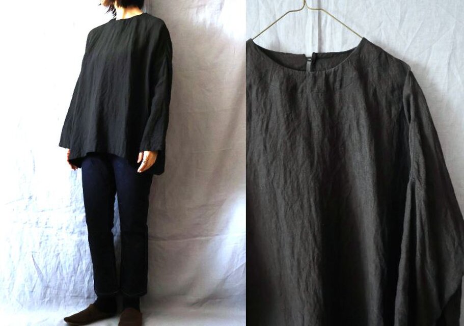 【受注制作・丈変更可】黒/天日干し60リネン(薄地) 細袖Bigプル