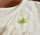 シンプルなカーディガンやシャツ、帽子、ポーチなどのワンポイントにいかがですか。