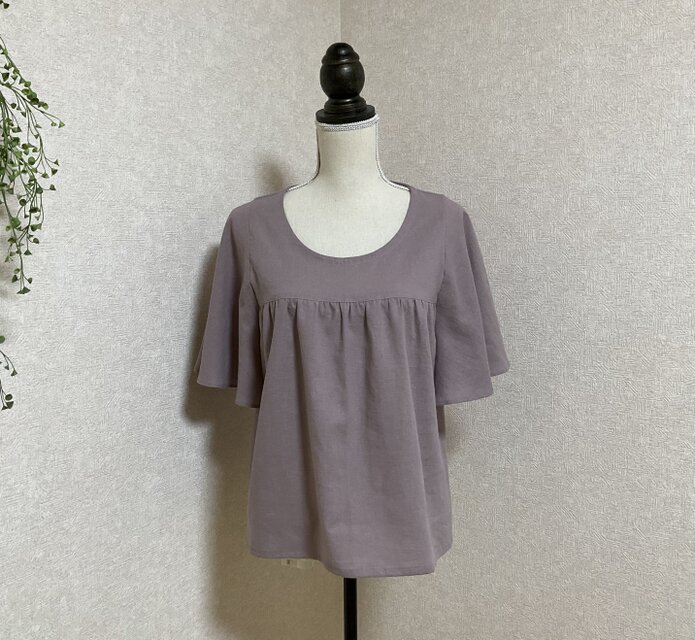 プルオーバー タイプの蝶々みたいなフリル袖がかわいいブラウス(pattern by mion)です。