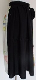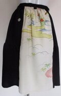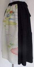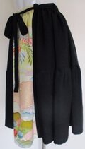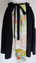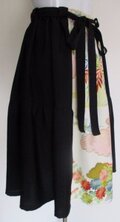 8683 花柄と黒の着物で作った膝丈スカート