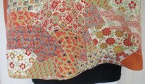 正絹の花柄の着物で作りました。